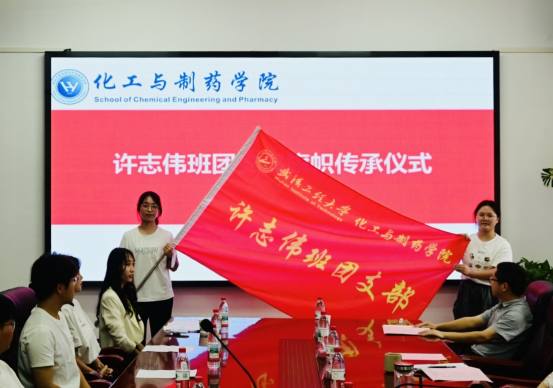 在许志伟班团支部旗帜传承仪式上,2021级负责人郑重将旗帜交予2023级学生代表,象征着奉献、担当、卓越的精神火炬在代际间薪火传承,生生不息。