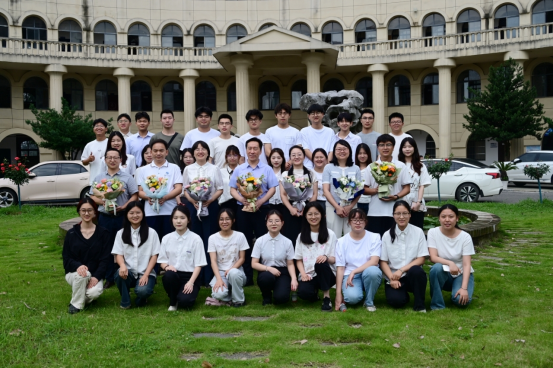 学院领导为毕业生代表赠送纪念品表达祝福,愿每一位同学都能珍藏这份专属的化药记忆。毕业生代表则手捧鲜花,向与会教师深深鞠躬,感恩师长培育之恩。全体参会人员合影留念,定格下这一温暖的瞬间。