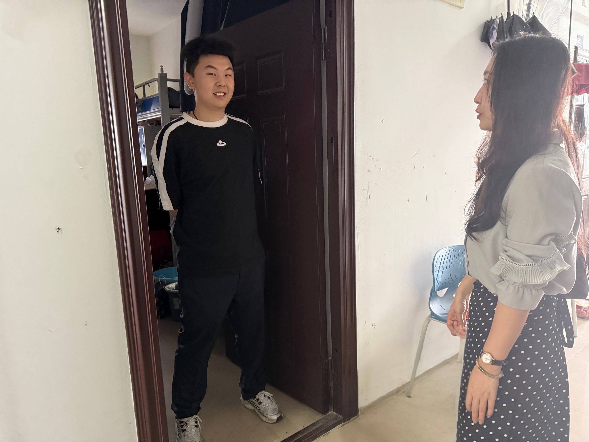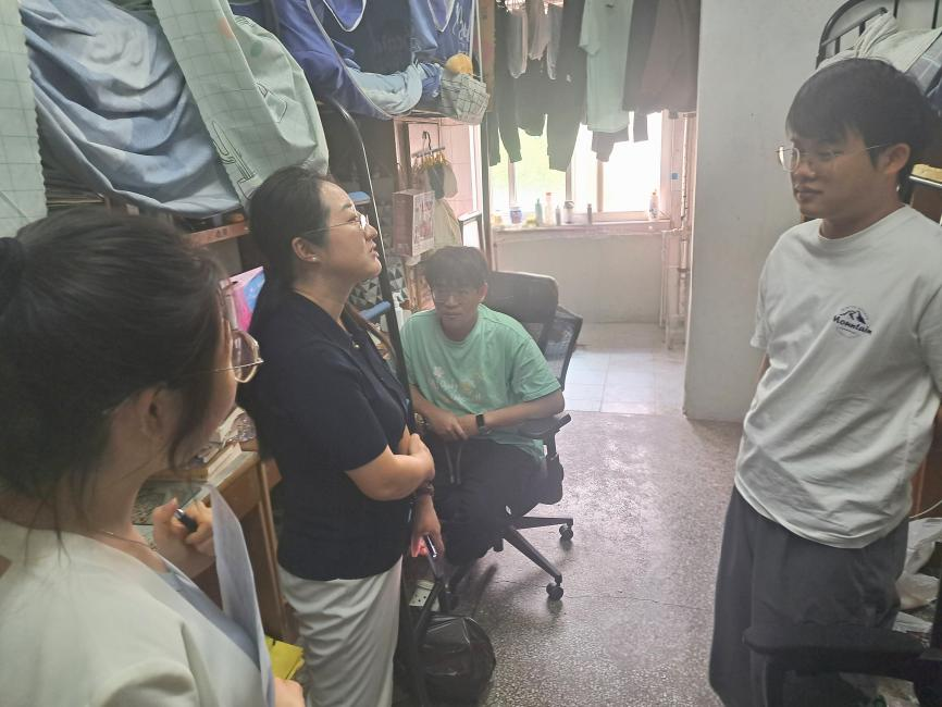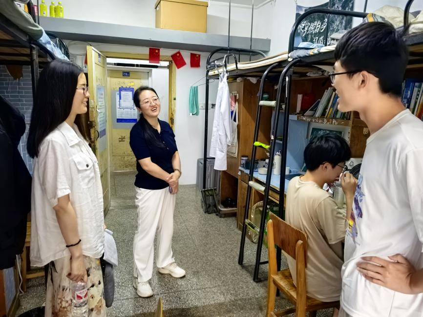 走访过程中,周丹与同学们亲切交流,并向同学们提出了三点提醒:一是离校安全不松懈,出行乘坐正规交通工具,谨防网络诈骗,保护好个人人身财产安全;二是留校纪律须严守,遵守宿舍门禁时间,按时报平安,突发情况及时联系辅导员和值班老师;三是健康管理常态化,注意饮食卫生、劳逸结合,返校前关注天气变化,备好所需物品。