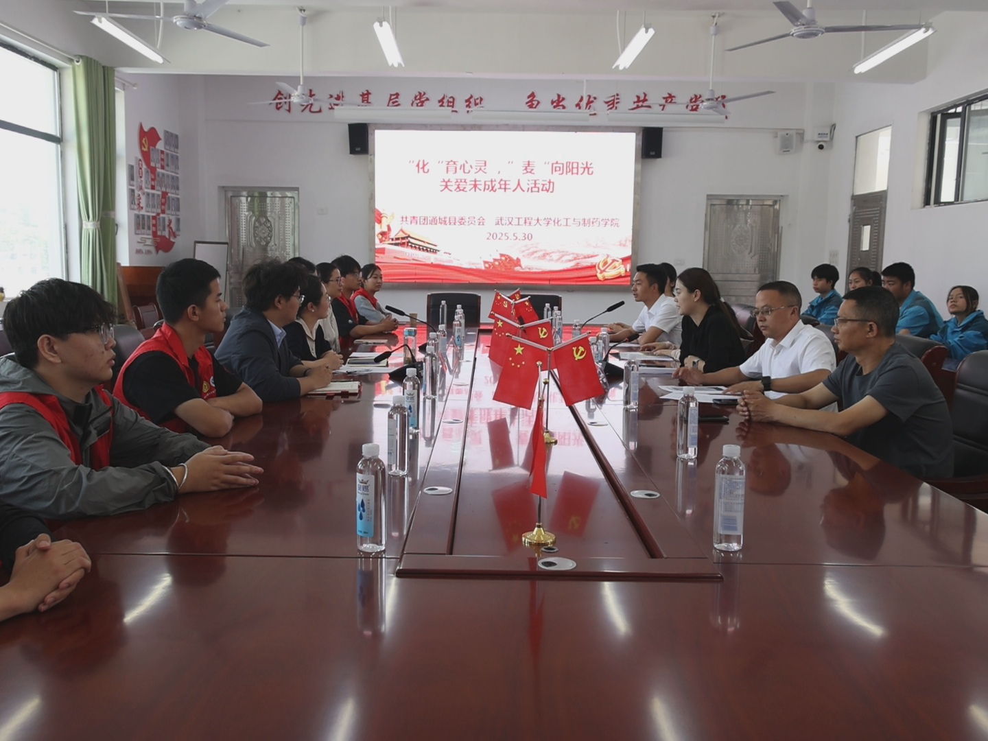 本网讯(通讯员 常琬笛)5月30日,3522vip浦京集团与湖北省通城县麦市中学联合开展“‘化’育心灵,‘麦’向阳光”关爱未成年人活动。3522vip浦京集团党委副书记周丹、共青团通城县委副书记黎灿、麦市镇教育总支书记胡姣、副书记葛卫明等出席活动,会议由麦市中学校长廉爽主持。