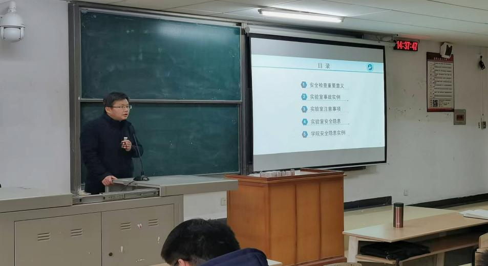 本网讯(通讯员 刘越思 谌伟民)为了加强学院实验室安全管理,提高安全风险防范的针对性和有效性,增强广大师生安全意识和正确掌握安全防范知识,守牢学院实验室安全底线,学院于12月12日下午在流芳校区第2教学楼208教室开展实验室安全教育讲座。副院长古双喜、学院实验室安全员谌伟民做实验室安全知识讲座。副院长余响林,博士后、硕博研究生,以及进入实验室的本科生参加了讲座,会议由副院长古双喜主持。