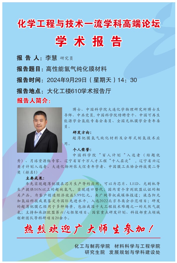【研究生创新学术论坛】高性能氢气纯化膜材料