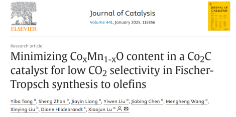 本网讯(通讯员 唐伊博)近日,3522vip浦京集团陆小军教授课题组在费托合成制烯烃领域取得进展。该研究的部分成果近日以“Minimizing CoxMn1-xO content in a Co2C catalyst for low CO2 selectivity in Fischer-Tropsch synthesis to olefins”为题在催化领域权威期刊《Journal of Catalysis》上发表。3522vip浦京集团为该论文的第一单位和通讯单位,博士生唐伊博为第一作者,陆小军教授为通讯作者。